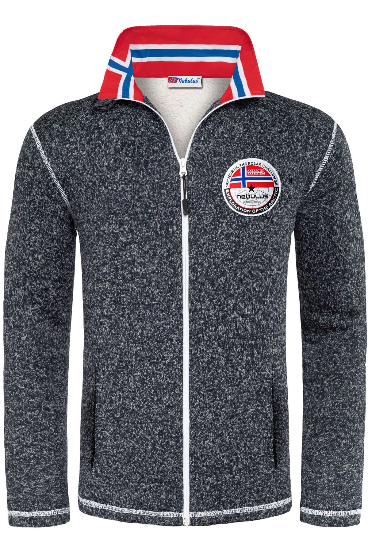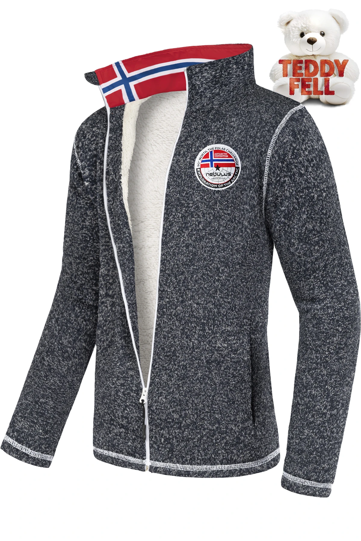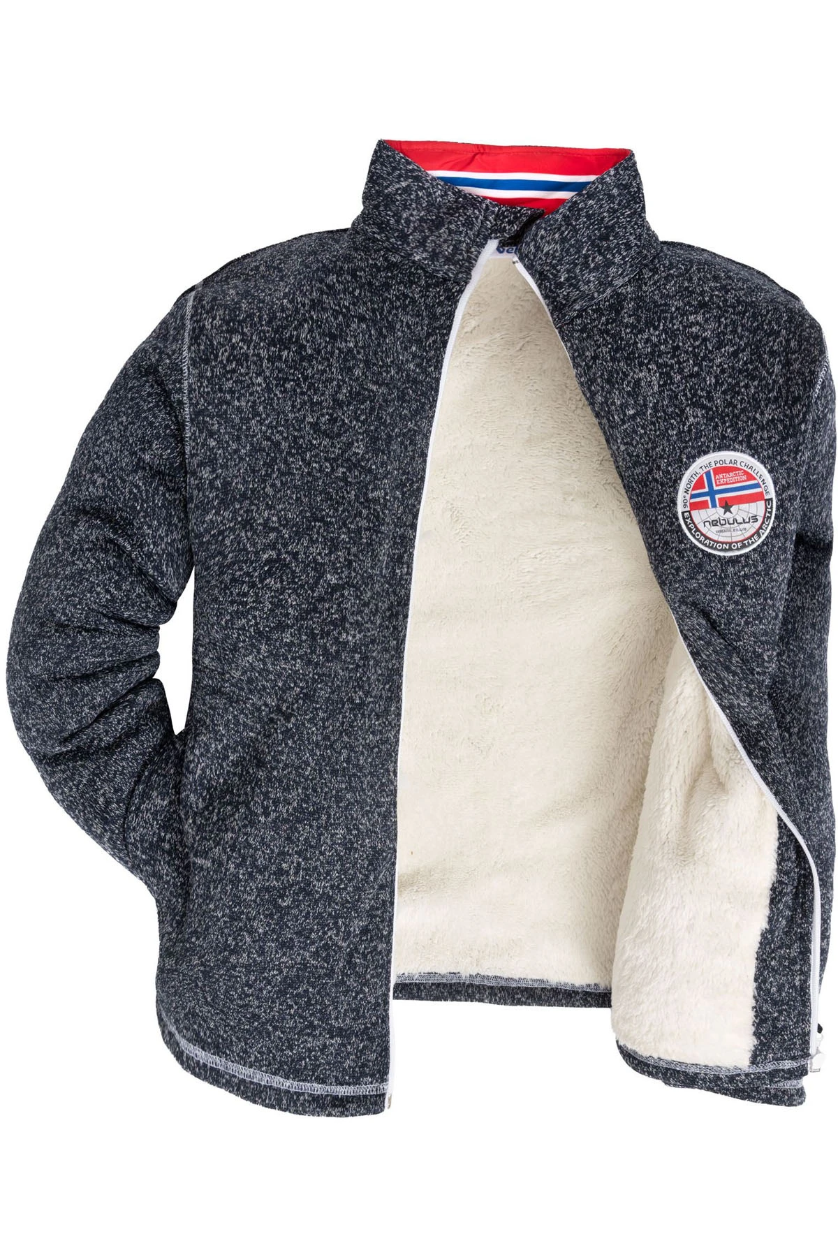 Die Herren-Fleecejacke Fallou von Nebulus kombiniert sportlichen Stil mit funktionalem Komfort – ideal für kalte Tage in Freizeit, Alltag und Übergangszeit. Das hochwertige Strick-Fleece mit Stretchanteil ist atmungsaktiv und sorgt für Bewegungsfreiheit und ein angenehmes Tragegefühl. Für zusätzliche Wärme an kühleren Tagen sind Body und Ärmel mit weichem Teddyfell gefüttert. Der hohe Kragen mit Signature Logo-Flagge schützt zuverlässig vor Zugluft. Farblich abgesetzte Reißverschlüsse und Overlock-Nähte in Kontrastfarbe setzen sportliche Akzente. Der innenliegende Kordelzug mit Stopper am Saum ermöglicht eine individuelle Passform. Der Regular Fit sitzt sportlich und bequem – kombinierbar mit Jeans oder Funktionshose. In Navy, Schwarz, Blau und Rot erhältlich. Pflegeleicht bei 30 °C, bügelleicht, nicht trocknergeeignet.
