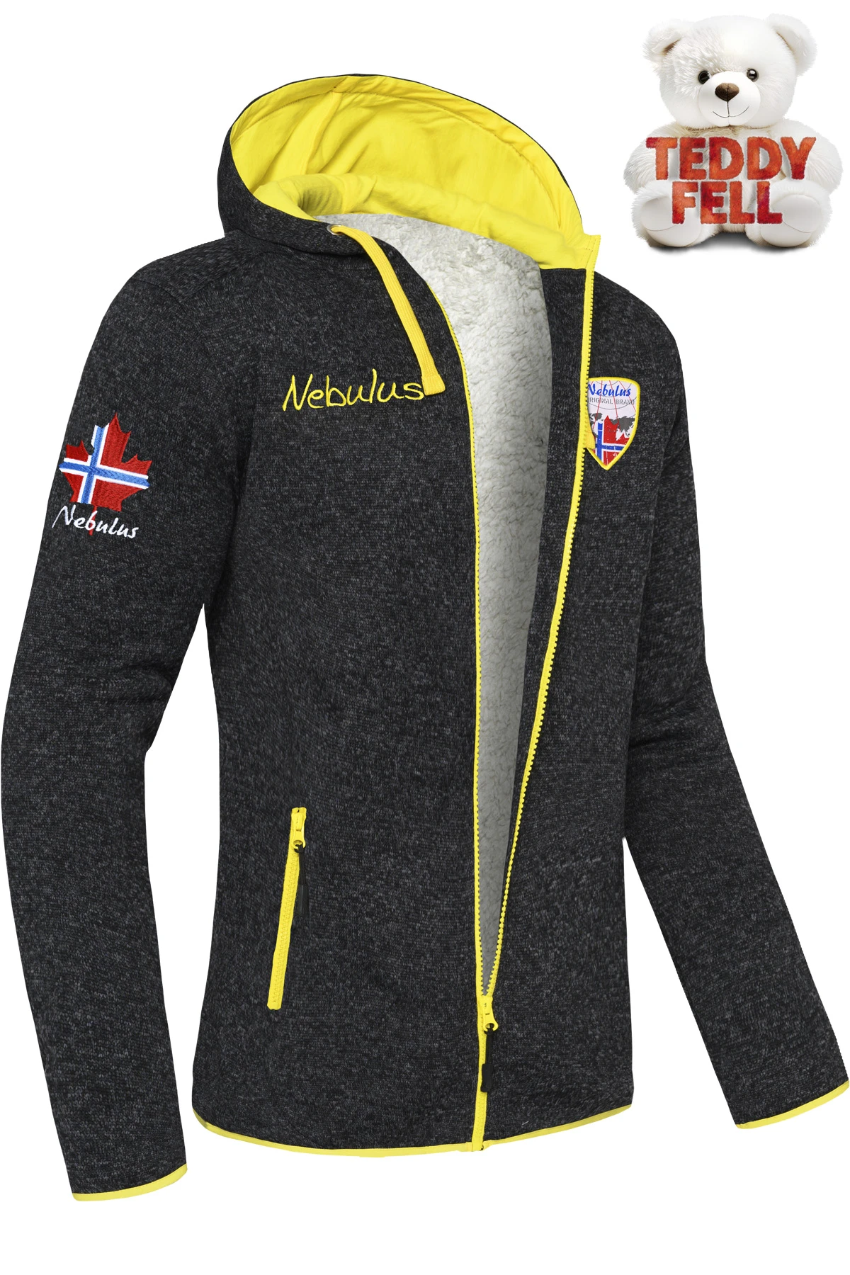 Die Herren-Fleecejacke Vladimir von Nebulus verbindet sportlichen Stil mit maximalem Tragekomfort. Das hochwertige Strick-Fleece mit Stretchanteil sorgt für Bewegungsfreiheit und Atmungsaktivität, ideal für aktive Tage in Freizeit, Alltag oder Outdoor. Das durchgehende Teddyfutter im Inneren hält angenehm warm und macht die Jacke perfekt für kühle Herbst- und Wintertage. Auch die gefütterte Kapuze mit Kordelzug bietet zusätzlichen Schutz bei Wind und rundet das Design funktional ab. Kontrastfarbene Zipper und fein gestickte Logos setzen stilvolle Akzente. Der sportliche Regular Fit sitzt bequem, ohne aufzutragen – perfekt zu Jeans, Jogpants oder Outdoorhosen. Die Jacke ist in vielen verschiedenen Farben erhältlich: Schwarz, Navy, Grün, Gelb, Rot und Grau. Sie ist pflegeleicht bei 30 °C, bügelleicht, nicht trocknergeeignet. Im Zweifel lieber eine Nummer größer wählen, um den vollen Komfort zu genießen.