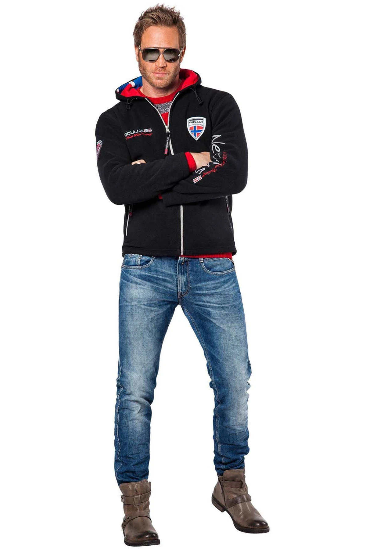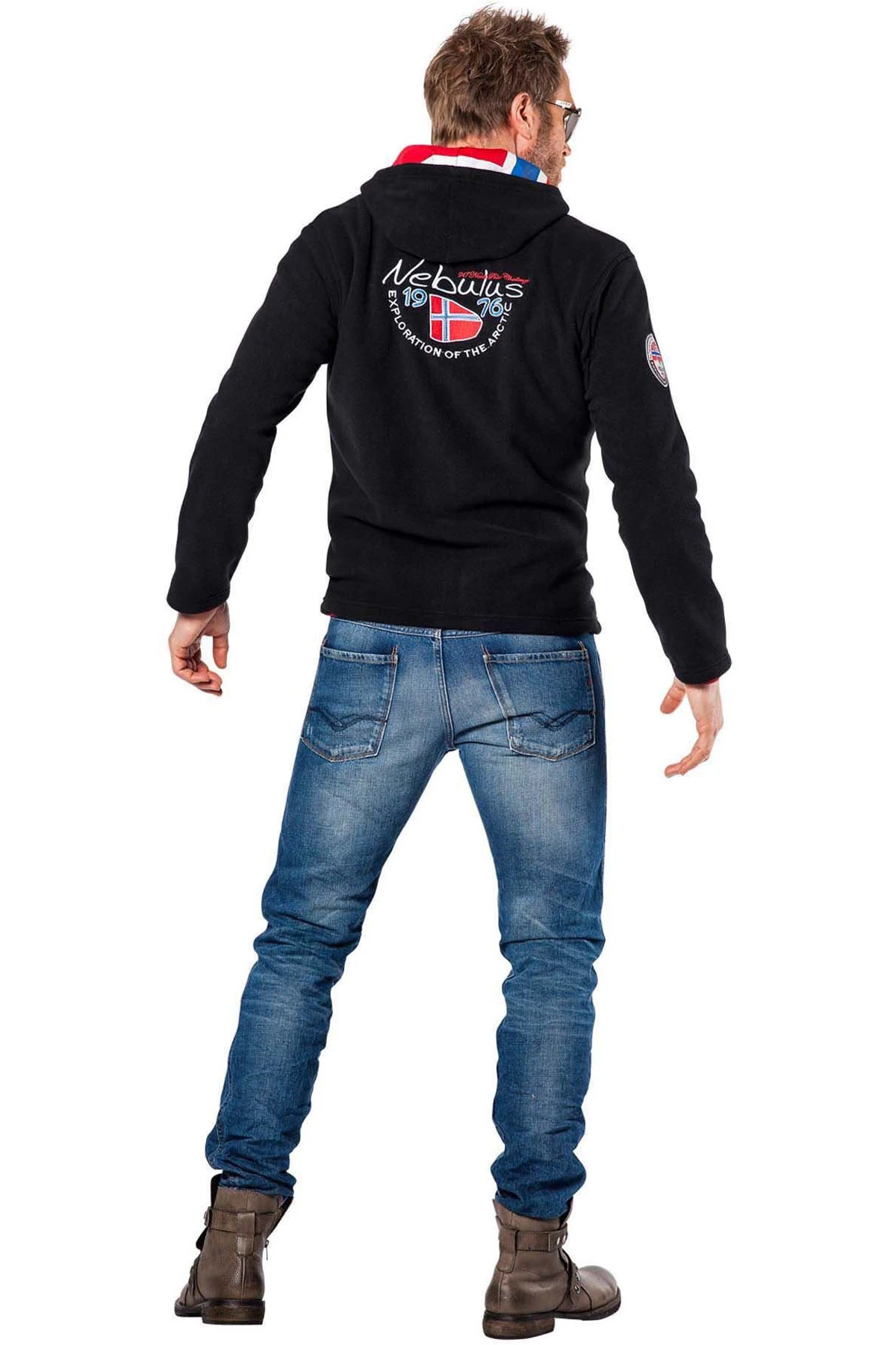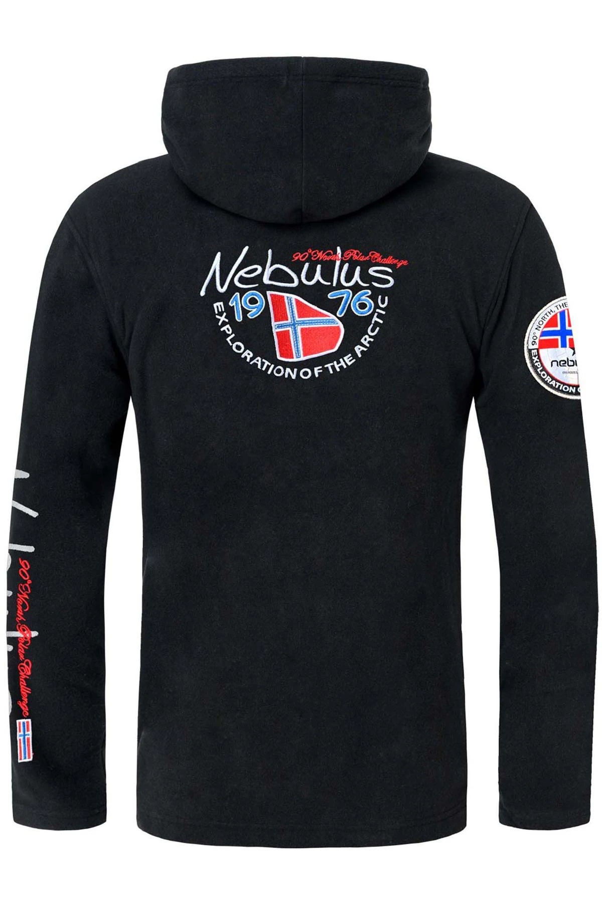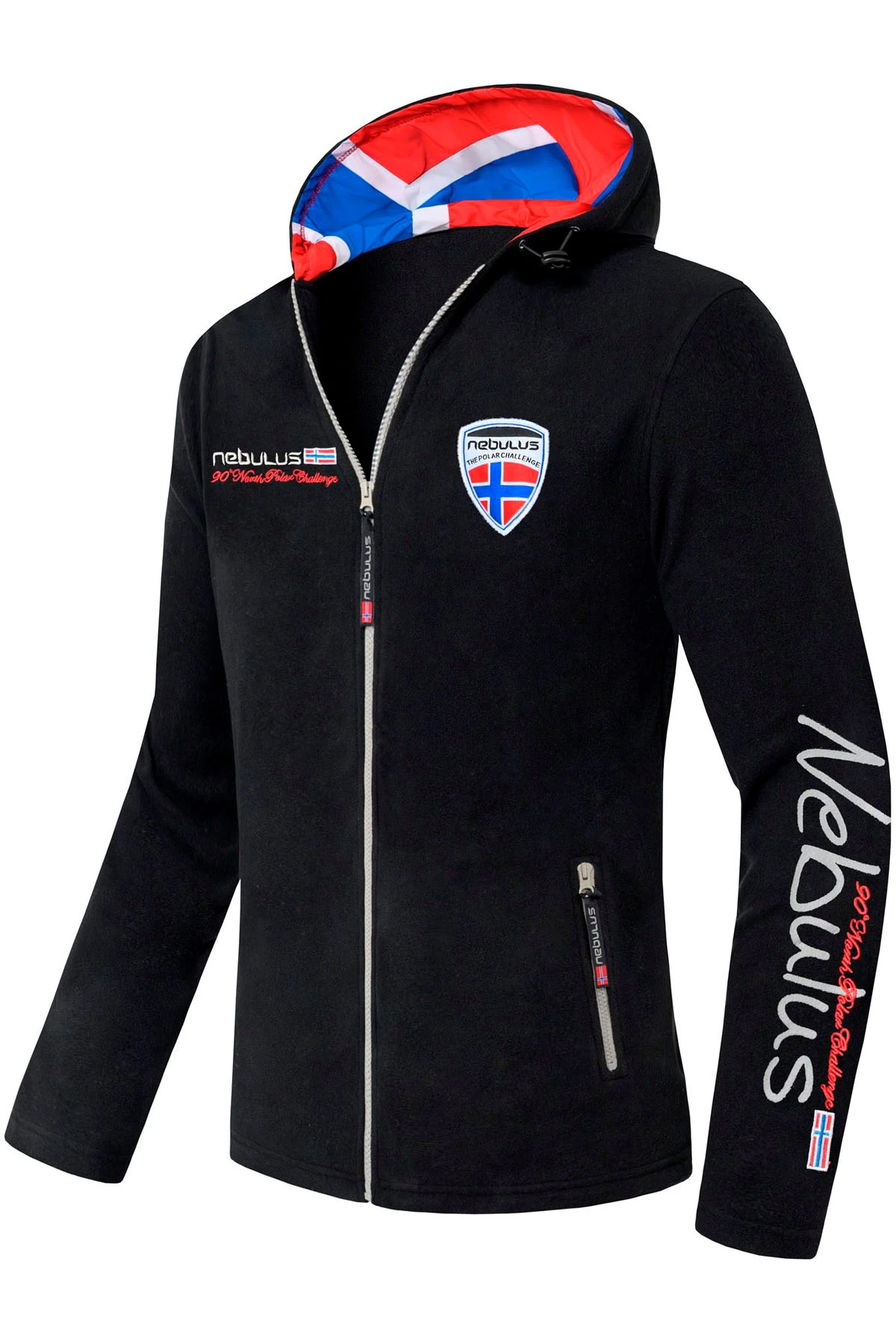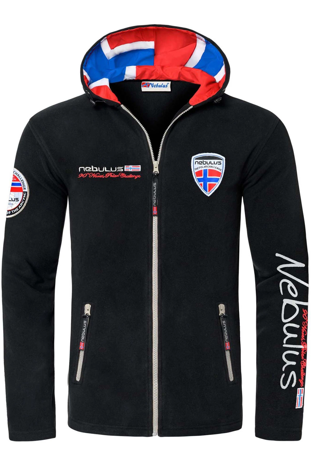 Die Herren-Fleecejacke Schweden von Nebulus ist ein sportlich-robuster Begleiter für Alltag, Freizeit und Übergangszeit. Der hochschließende Kragen mit gefütterter Kapuze und Kordelzug bietet optimalen Schutz bei Wind und Wetter. Das atmungsaktive Material aus 100 % Stretch-Fleece sorgt für angenehmen Tragekomfort und gute Beweglichkeit. Praktisches Detail: der innenliegende Kordelzug am Saum, mit dem du die Jacke individuell anpassen kannst. Gestickte Logos und ein eingearbeitetes Kapuzenlogo setzen markante Akzente. Der sportliche Regular Fit sitzt bequem – ideal zu Jeans, Funktionshose oder Sommer- und Winterschuhen. Erhältlich in Schwarz, Navy, Blau, Rot und Grün. Pflegeleicht bei 30 °C, bügelleicht, nicht trocknergeeignet – unkompliziert und alltagstauglich.