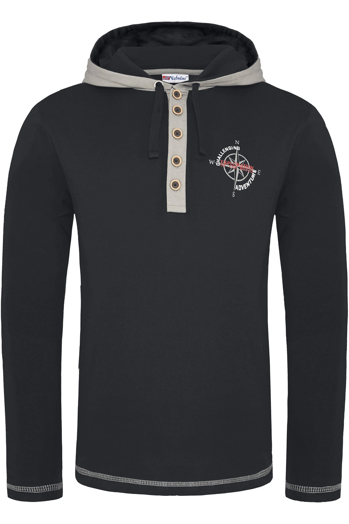 Mit Kapuze und Knopfleiste