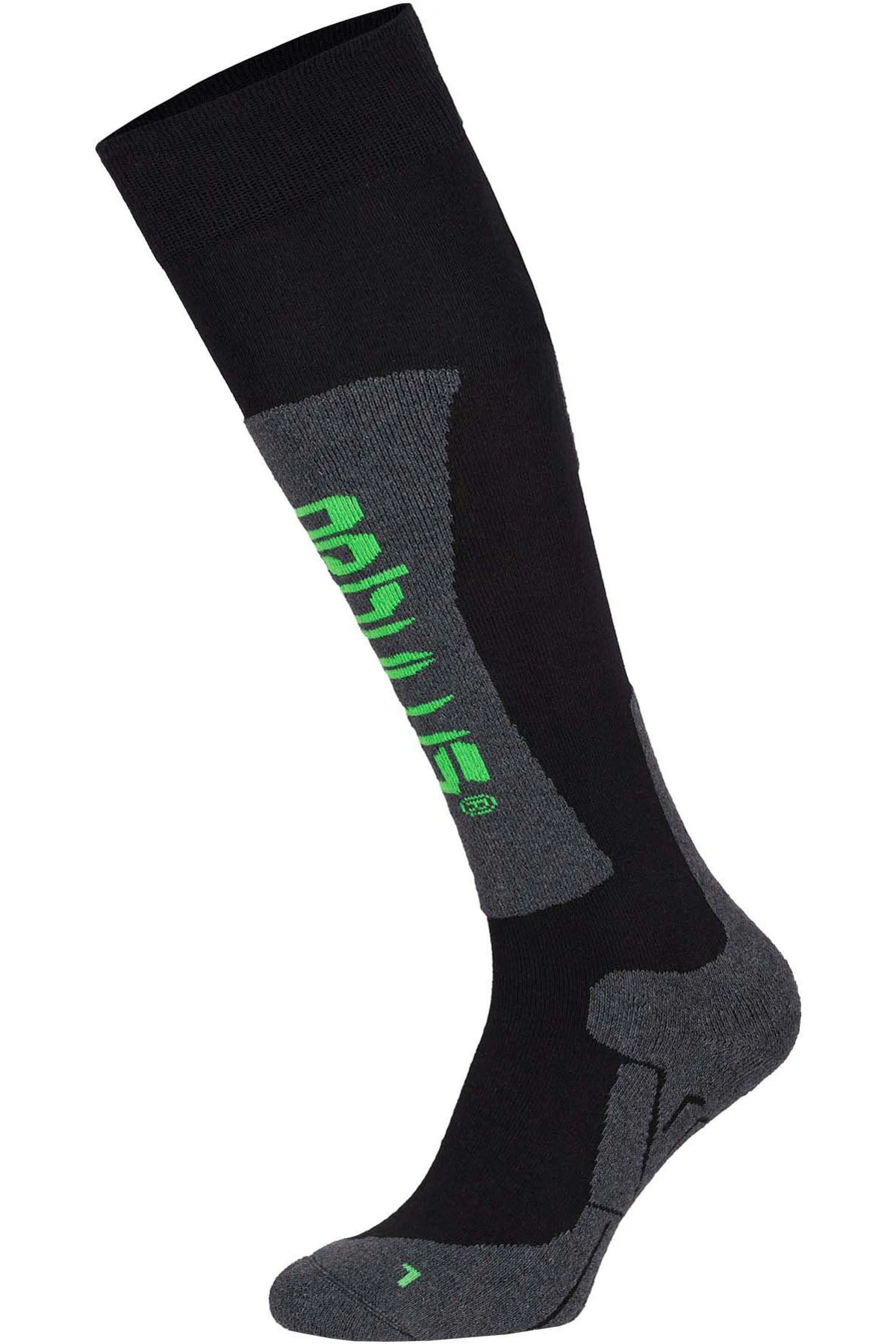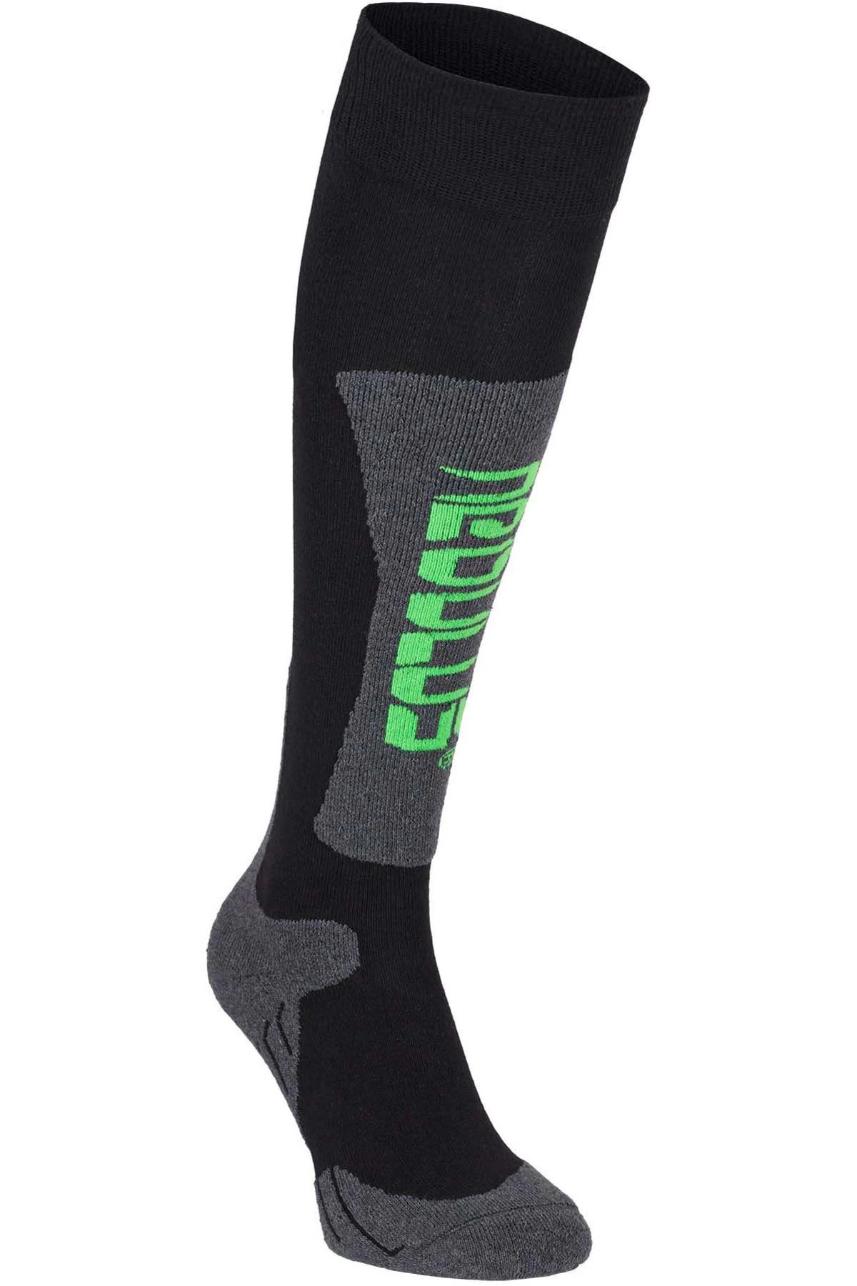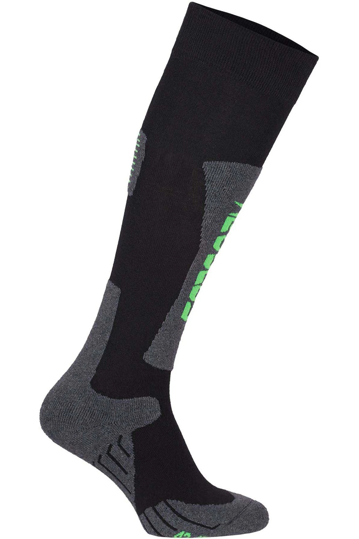 Die FLASH Skisocken für Damen verbinden maximalen Komfort mit einem markanten Style. Aus elastischem Baumwollmix gefertigt, passen sich die Kniestrümpfe perfekt der Fußform an und sitzen sicher durch elastische Rippbündchen. Besonders beim Skifahren punkten sie mit ihrer ergonomischen Form und den gezielt eingesetzten Polsterungen an Waden, Schienbein und Vorderfuß, die Druckstellen reduzieren und für ein angenehmes Tragegefühl auch bei langen Skitagen sorgen. Der auffällige Nebulus-Schriftzug in Flash-Grün verleiht den Socken einen dynamischen, sportlichen Look, der zu jedem Skioutfit passt. Dank ihrer isolierenden Eigenschaften bleiben die Füße auch bei eisigen Temperaturen angenehm warm – ob auf der Piste oder im Alltag. Pflegehinweis: 30 °C waschbar, bügelleicht, nicht trocknergeeignet.