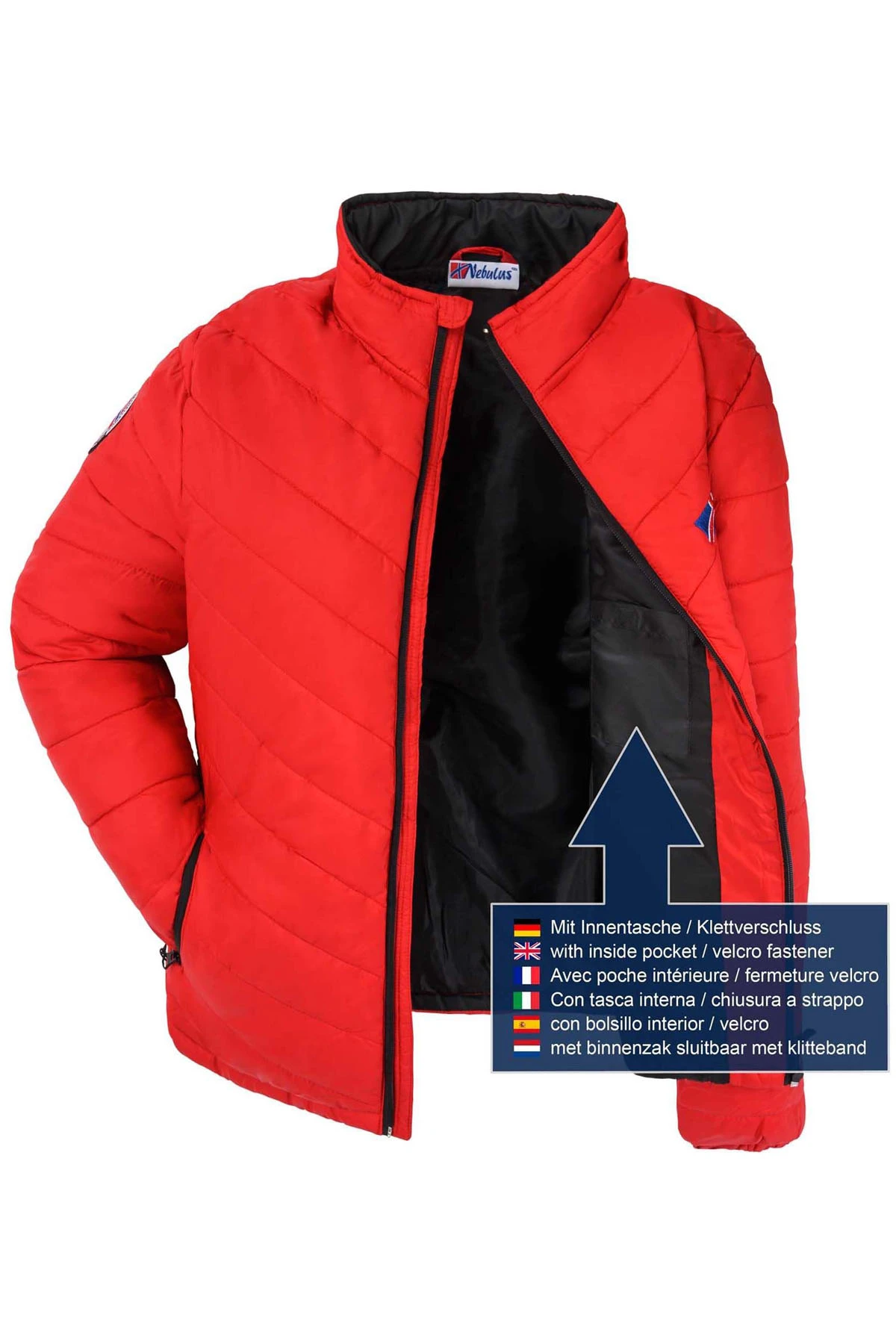 Die Herren-Winterjacke Tanno von Nebulus kombiniert sportlichen Style mit zuverlässigem Kälteschutz. Ihr modernes Steppmuster in wabenähnlicher Daunen-Optik verteilt die Wattierung optimal und sorgt so für angenehme Wärme, ohne dick aufzutragen. Der Oberstoff aus 100 % Polyester ist robust, wasserabweisend und damit perfekt für kalte, nasse Tage. Ein hoher, dick wattierter Kragen schützt zusätzlich vor Wind. Dezente Signature-Logo-Stickereien unterstreichen den markentypischen Look. Zwei seitliche Reißverschlusstaschen und eine Innentasche mit Klettverschluss bieten Platz für Smartphone und Co., elastische Ärmelbündchen halten die Kälte draußen. Passform: sportlicher Regular Fit, fällt leicht kleiner aus – bei Zwischengrößen lieber größer wählen. Erhältlich in Hellgrün, Rot, Schwarz, Navy und Hellblau – vielseitig kombinierbar zu Jeans und Winterboots. Pflegeleicht bei 30 °C, nicht für den Trockner geeignet.
